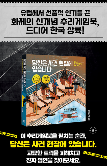 728x90반응형당신은 사건 현장에 있습니다 도서의 책소개로 공항, 크루즈, 박물관, 경찰서 등 유럽 곳곳에서 의문의 사건이 발생했다. 뭔가 미심쩍은 자살부터 불운한 사고, 기묘한 미스터리까지 각기 다른 12개의 사건 현장이 당신을 기다린다. 천재 크리에이터 모데스토 가르시아가 기획한 이 책은 독특한 창의성과 놀라운 상상력으로 독자들을 추리 소설의 주인공으로 만든다.